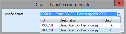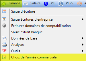 - Changer d'année commerciale via le point de menu (Ribbons: sous Fichier – Année commerciale)