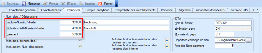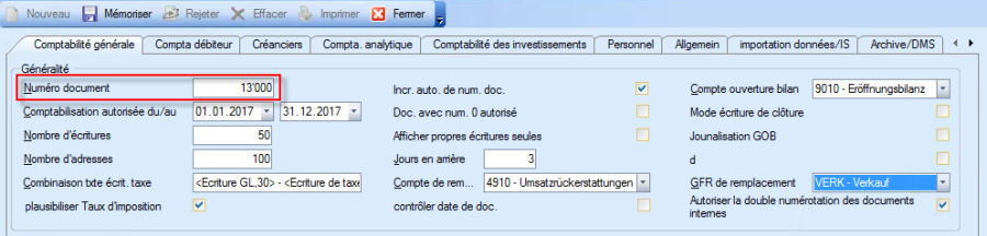 Lors de l'ouverture d'une nouvelle année commerciale, il est possible de régler la numérotation des documents. Il existe 3 variantes à disposition.