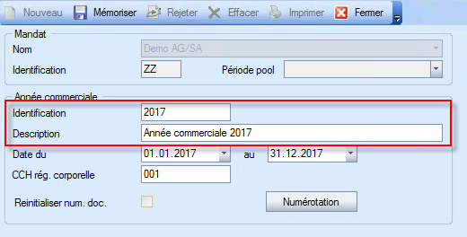 - Avec le bouton „Mémoriser" l'année commerciale est créée.