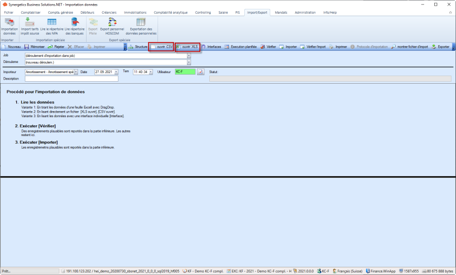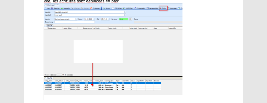 Les données chargées sont vérifiées à l'aide du bouton «Vérifier» et, si aucune erreur n'est trouvée, les écritures sont déplacées en bas: