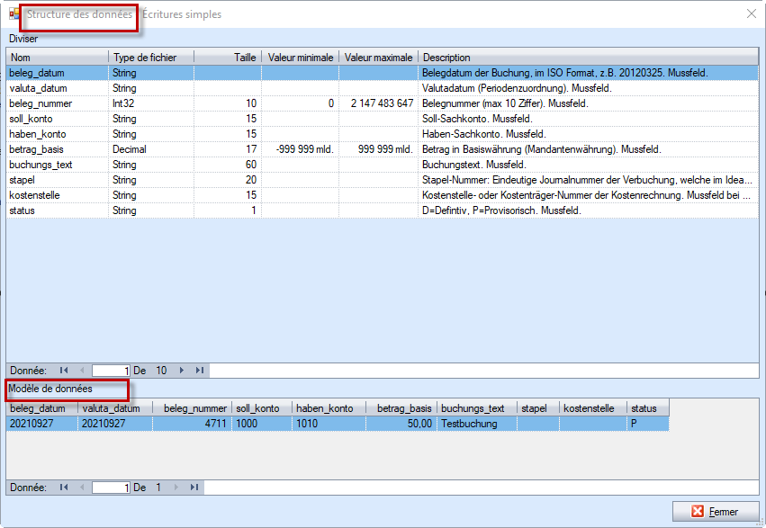 La structure des données est très simple, puisqu'elle ne comporte que 10 champs: