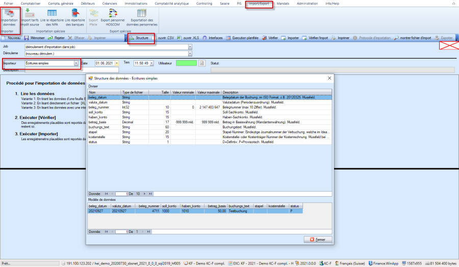 En appuyant sur le bouton "Importer", les données sont enregistrées comme écriture comptable du grand livre :