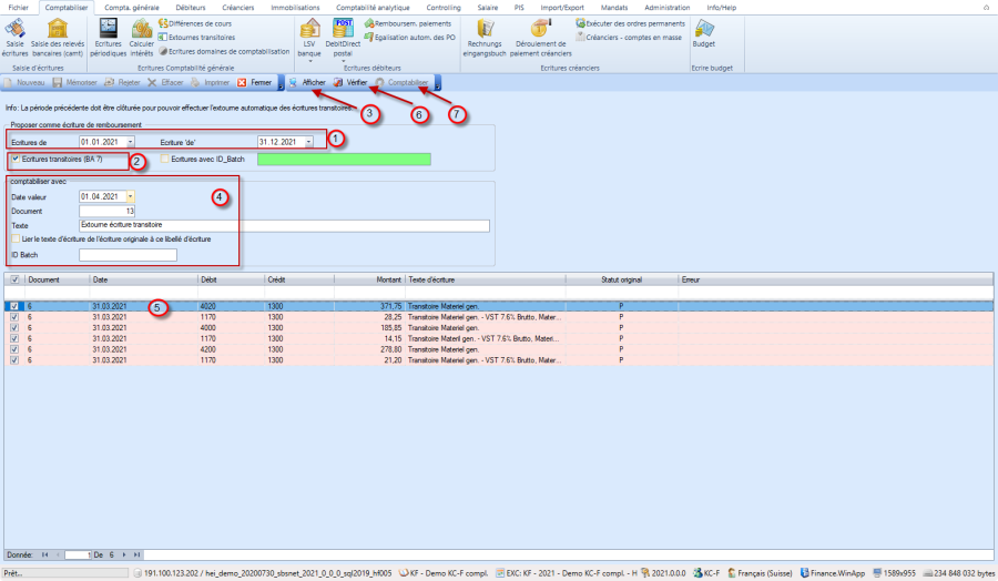 7. bouton «Comptabiliser»