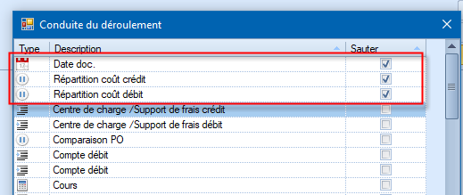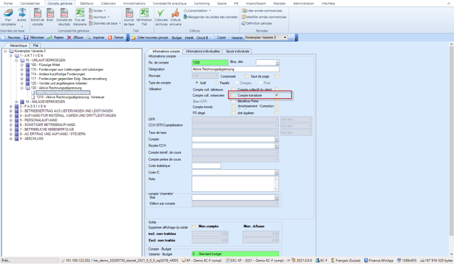 Lorsqu'il y a la sélection «Compte transitoire» dans le plan comptable, les écritures passées sur ces comptes pour la clôture peuvent être déclenchees automatiquement pour l'inversion comptable.