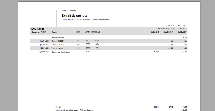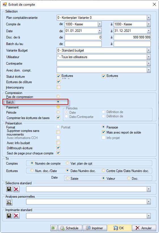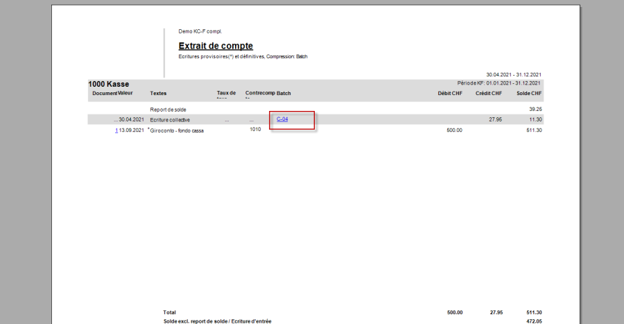 Dans l'extrait de compte, ces écritures par Batch ou collectives peuvent être présentées de manière résumée ou non: