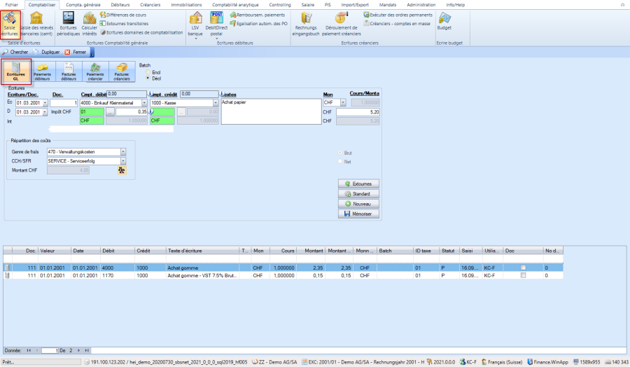 2 Saisie écriture GL