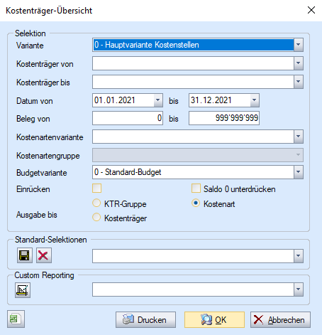 Typ | Mittels des Schalters kann bestimmt werden, ob Kostenstellen und Kostenträger oder nur ein Typ von Beiden ausgewertet werden sollen. |
