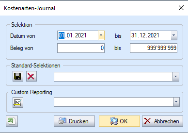 Datum von/bis | Datumsbereich, für welchen das Journal ausgegeben werden sollen. |