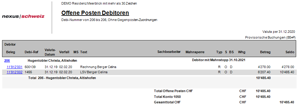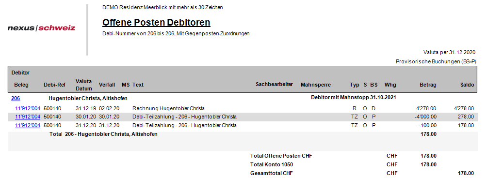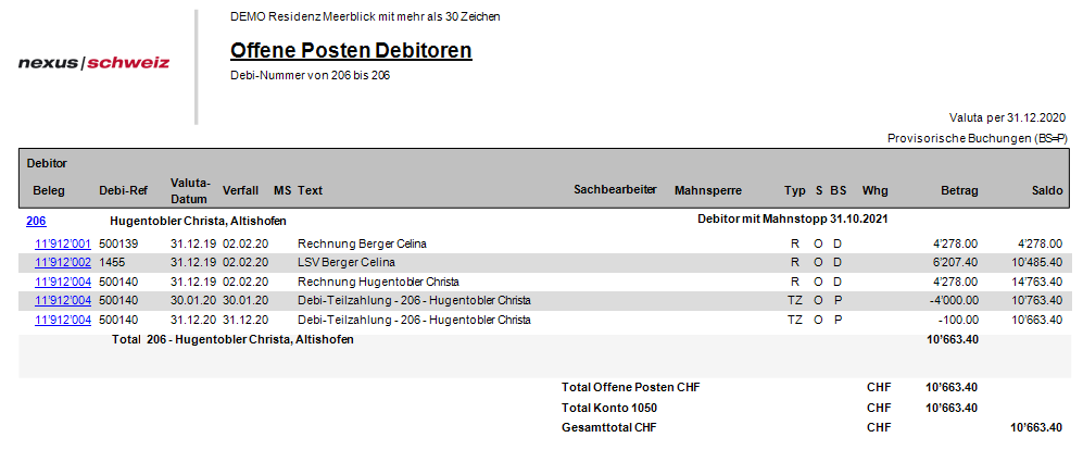 Mit Originalbeleg | Zeigt pro Offener Posten die Verrechnungshistorie auf. Beispiel: Grund der zu Offenen Posten mit Verrechnungshistorie führt: | ||||||