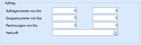 Auftragsnummer von/bis | Selektion der Auftragsnummer | ||||||