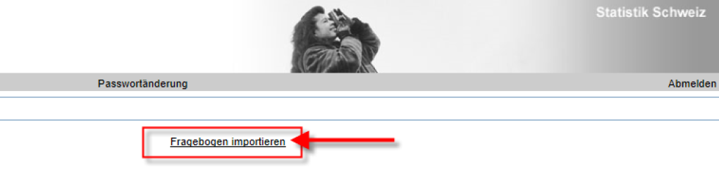 - Via „Fragebogen importieren“ die entsprechende Datei anwählen.
