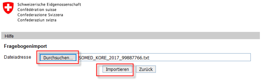 - Button „Durchsuchen“ = Datei wählen und danach Button „Importieren“ klicken: