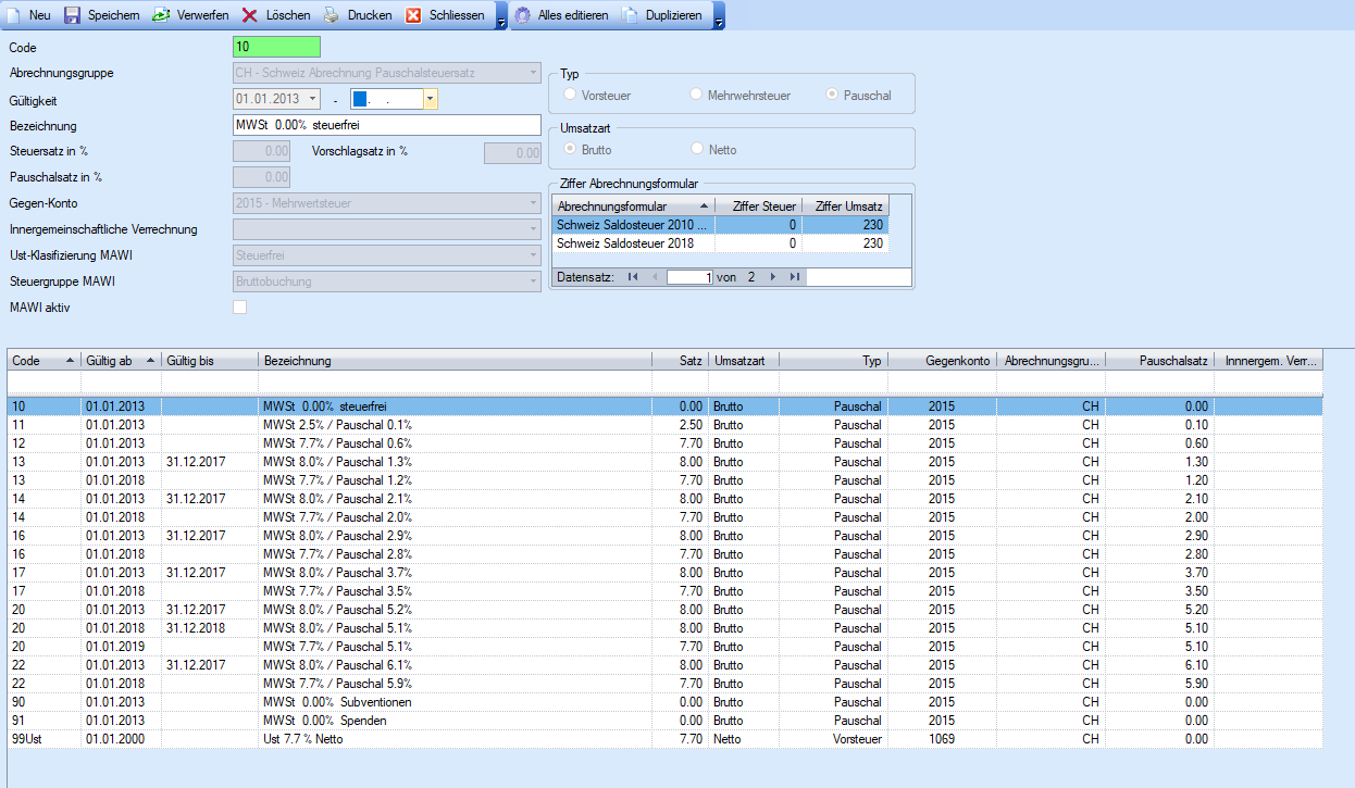 Das Programm führt gewisse Stammdaten pro Geschäftsjahr. Dies hat den Vorteil, dass bei Firmenreorganisationen nicht mehr gebrauchte Stammsätze in Folgejahren problemlos gelöscht werden können (Ausnahme: Bilanzkonti mit Saldovortrag). Folgende Stammdaten sind geschäftsjahresabhängig:
