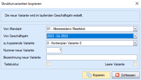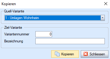 [Kopieren] | Kopieren einer Variante inklusive deren enthaltenen Kostenblöcken und Verrechnungsart. |