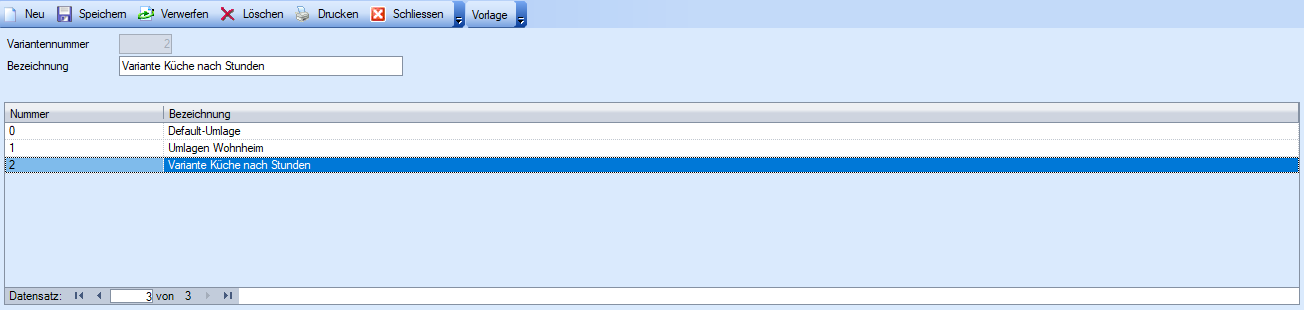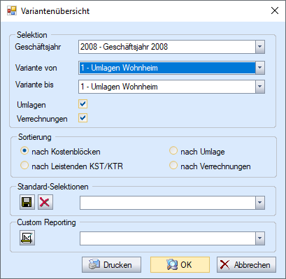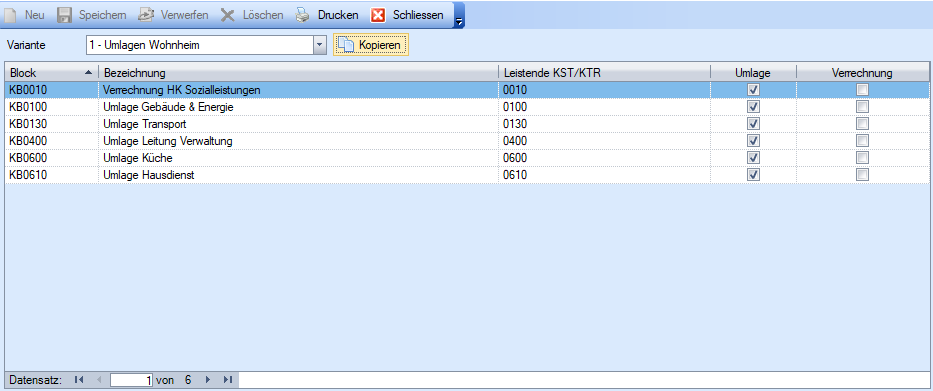 Variante | Wahl der Variante, in welcher sich der Kostenblock befindet, der über die Verrechnungsart Umlage verrechnet werden soll. |