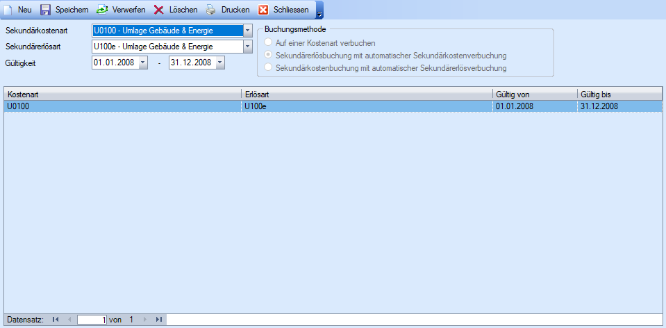 Gültigkeit | Zeitraum, in welchem die Sekundärkostenarten oder -erlösarten automatisch vorgeschlagen werden sollen. |