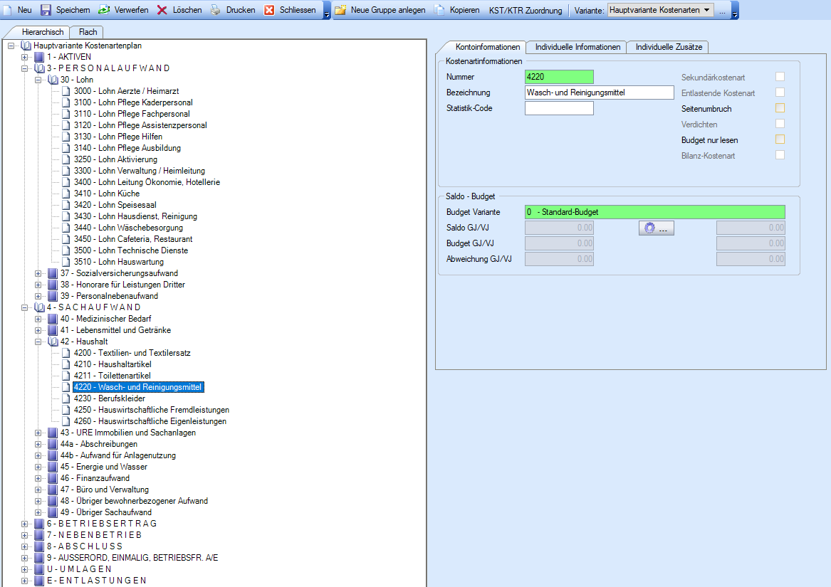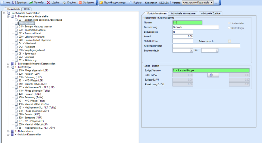 Der Aufbau des Kostenarten-Planes und die gewünschte Gliederung sind vom Anwender vollständig frei gestaltbar. Zudem können für einen bestehenden Kostenartenplan eine beliebige Anzahl von Varianten (Auswertungsstrukturen) geführt werden.