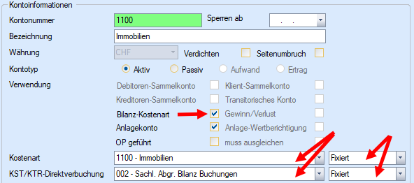 KST/KTR Direktverbuchung | Optional kann eine KST/KTR am Konto hinterlegt werden, die bei der Buchungserfassung direkt vorgeschlagen werden.