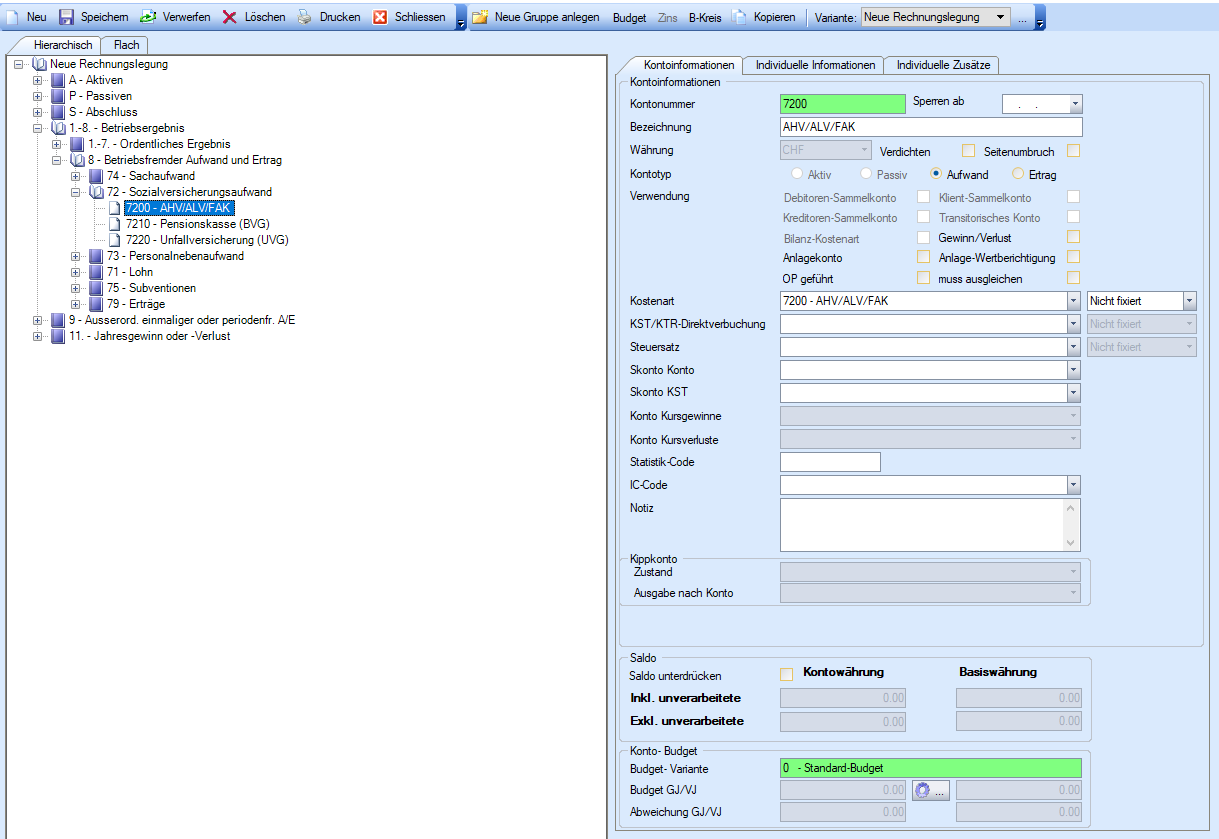 Der Kontenplan ist der zentrale Punkt der Finanzbuchhaltung. Im Kontenplan werden Gruppen und Konti erfasst und bearbeitet.