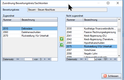 [Konten] | Zuordnung von Konten, welche gegenüber dem Hauptjournal abgegrenzt werden muss. Die zugeordneten Konten können beim Buchen im Hauptjournal direkt aus der Buchungserfassung/Sachbuchungen abgegrenzt werden. |