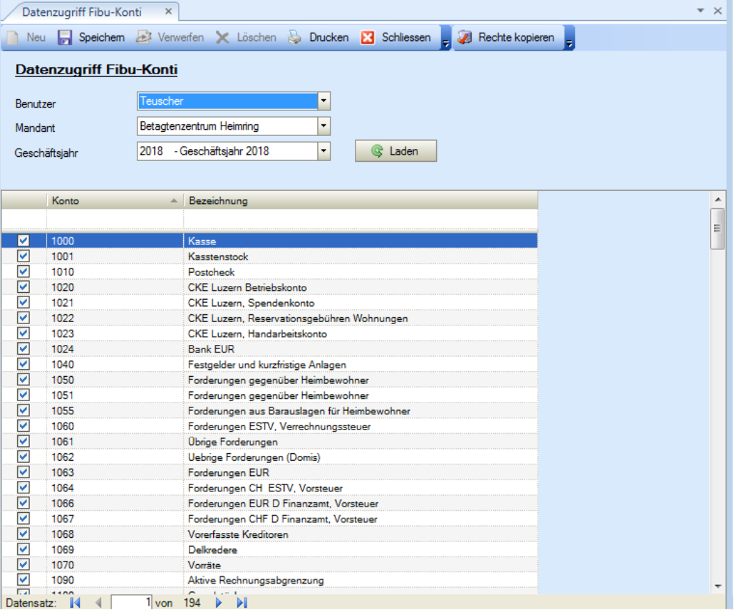 In finanz.NET werden Datenzugriffe auf Fibu-Konti, Kostenstellen, Kostenarten und Projekte auf Benutzerebene eingerichtet.