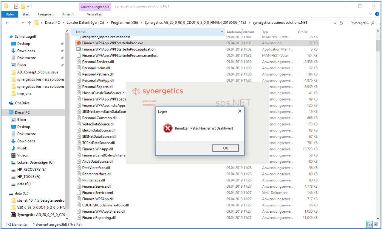 Kann das AD-Autologin nicht erfolgreich durchgeführt werden (z.B. wegen unzureichenden Rechten, oder inaktivem Benutzer) wird die Applikation nicht gestartet und das Login-Fenster (wie bisher gewohnt) erscheint.