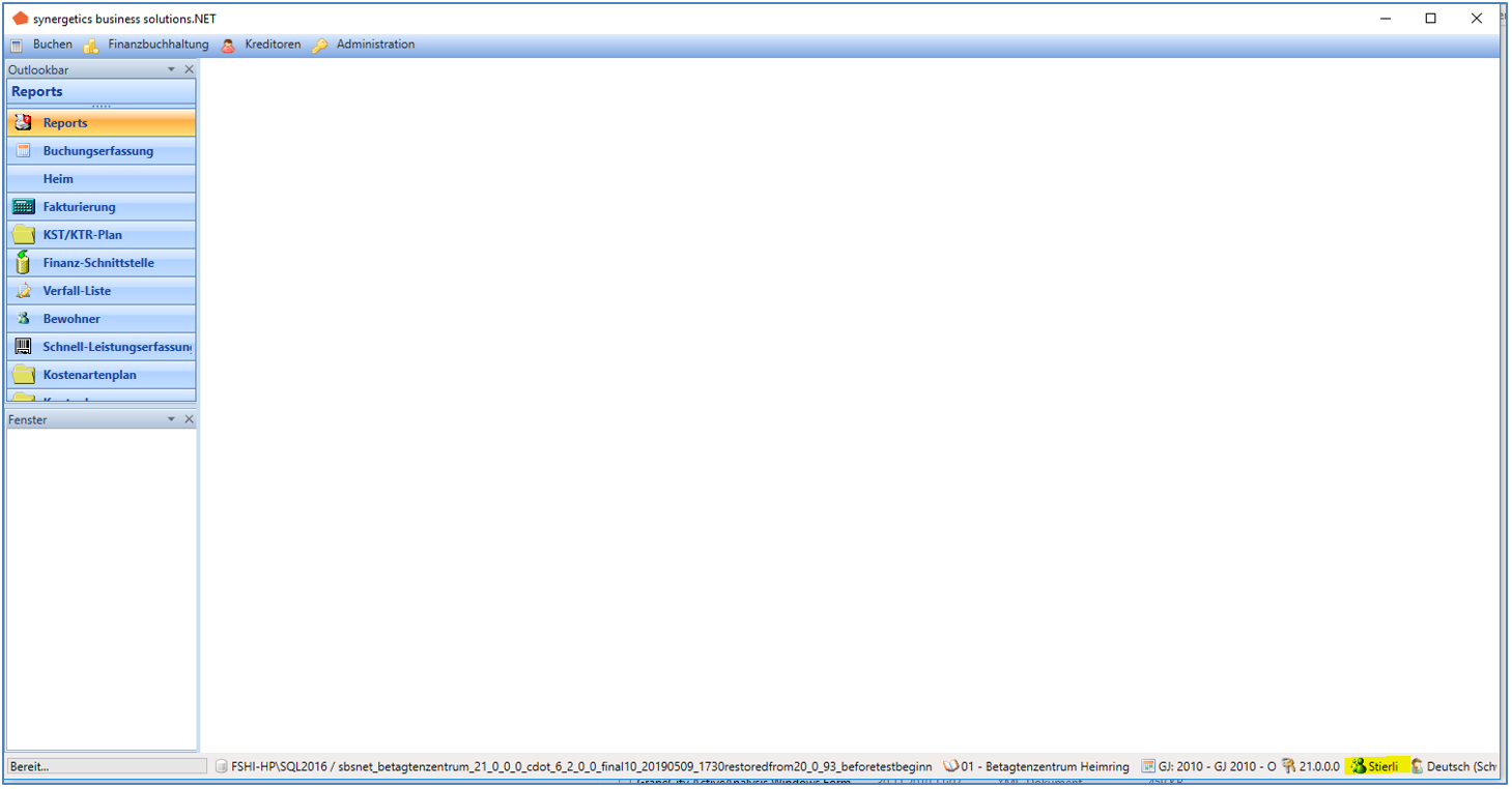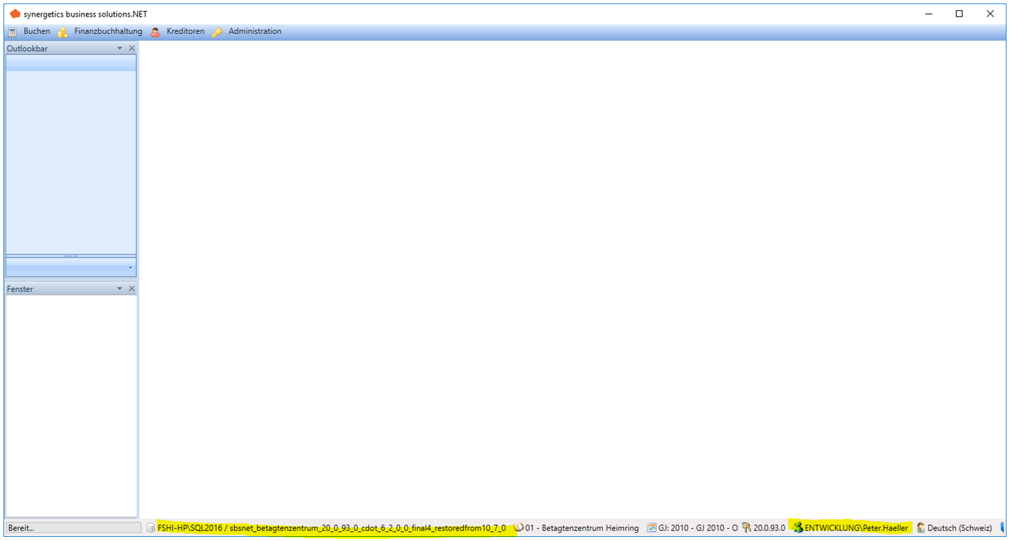 Nach der Anmeldung mit dem AD-Benutzer ENTWICKLUNG/Peter.Haeller ist im Statusbar der Anwendung die gemappte Applikation-BenutzerID Stierli ersichtlich. Alle Benutzeraktivitäten der .net-Applikation erfolgen auf den Benutzer Stierli (wie bisher):