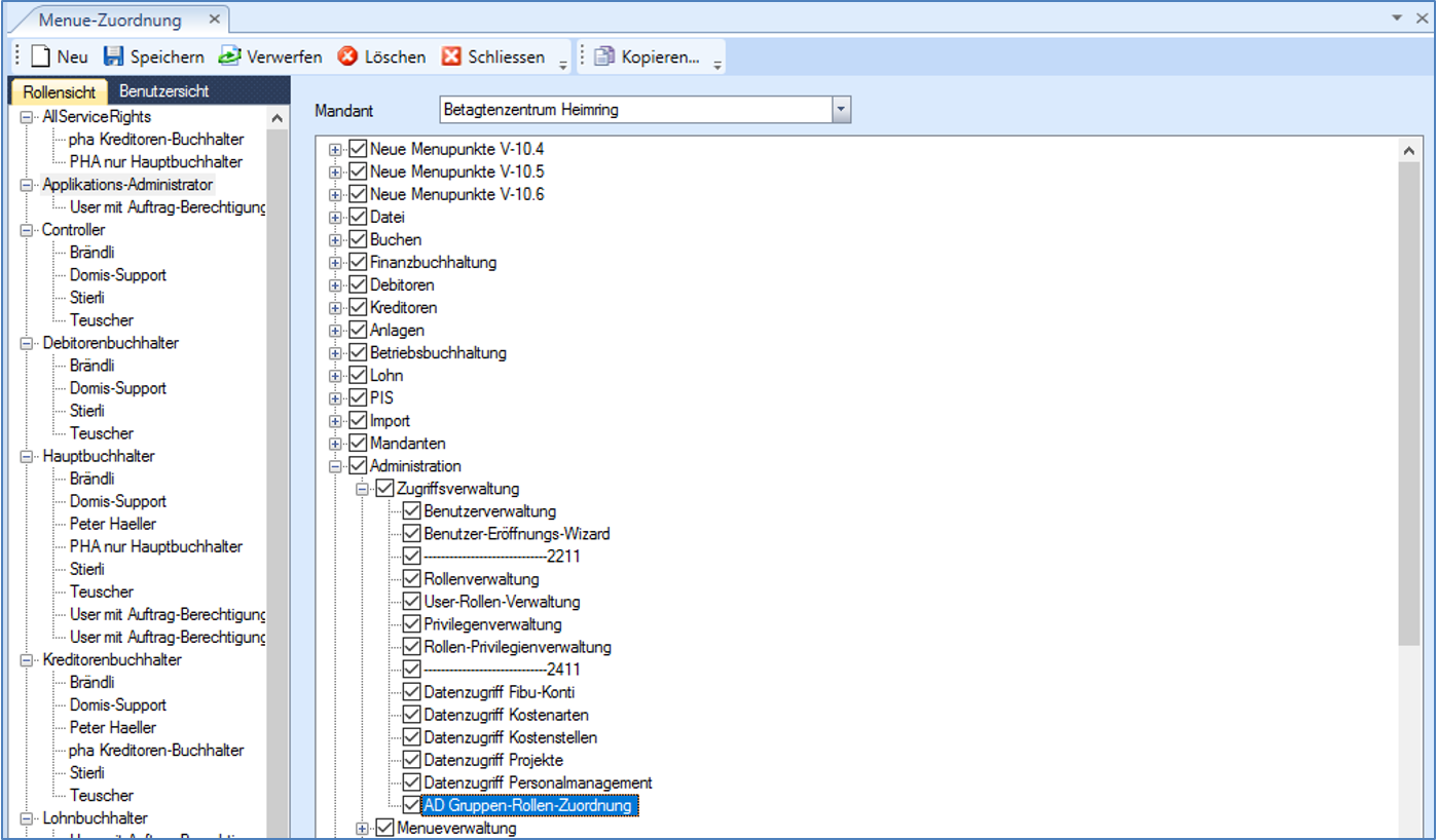 Funktion der AD-Gruppen-Rollen-Zuordnungen: