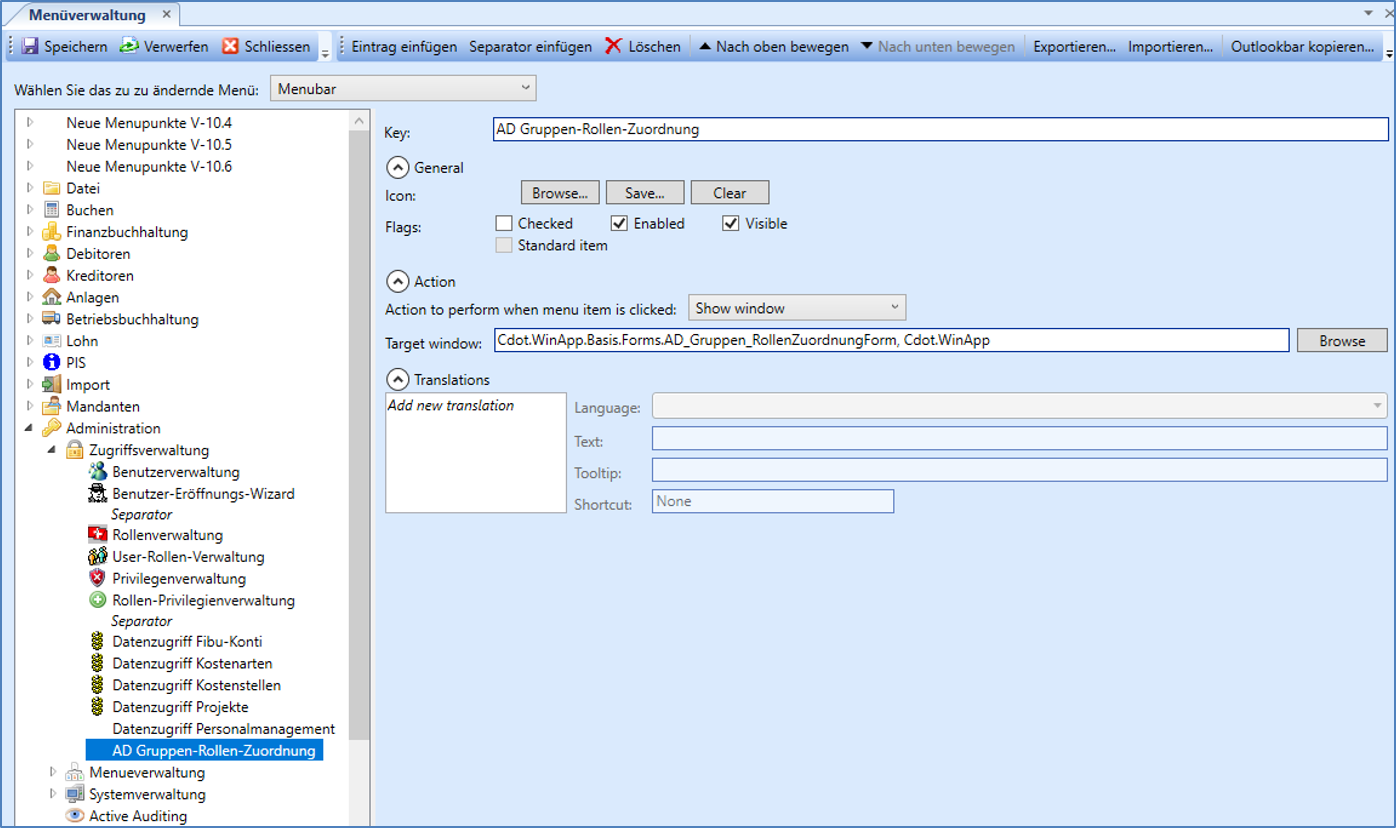 Das Form AD-Gruppen-Rollen-Zuordnung in das Menu integrieren (sofern nicht schon im App-Menu vorhanden).