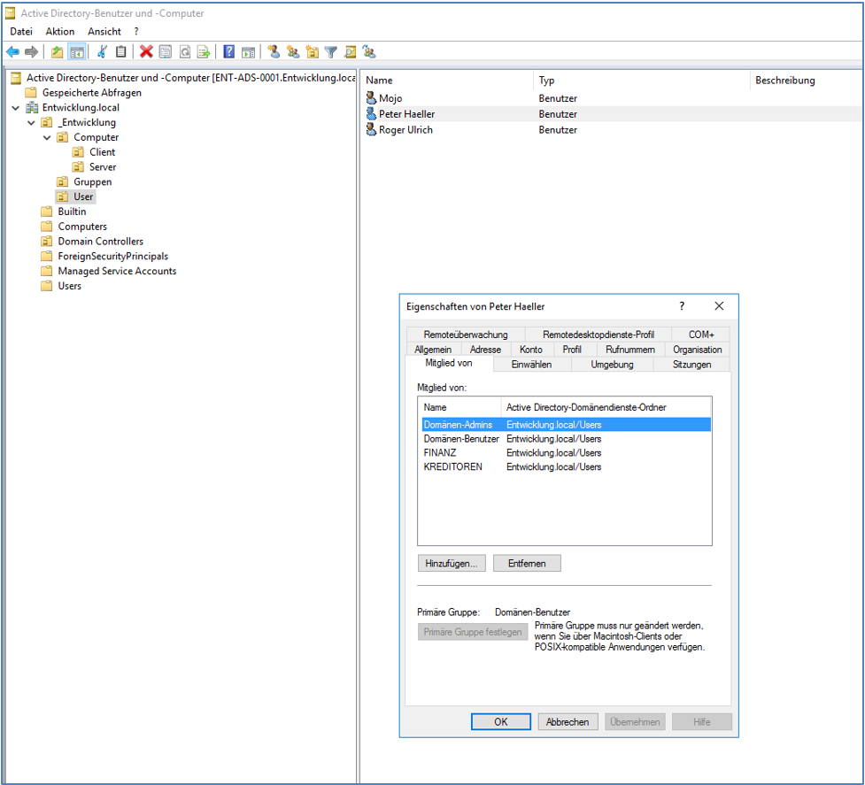 AD-Benutzer zu AD-Gruppen zuweisen