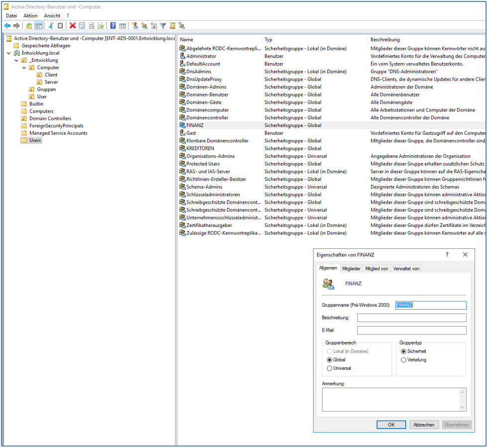 AD-Gruppen einrichten