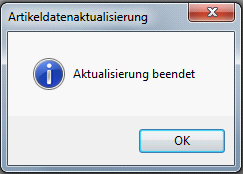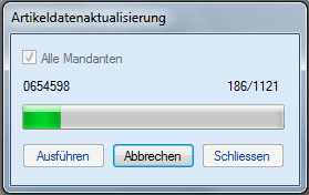 NEXUS / MATERIAL NEXUS / MATERIAL - Handbücher Handbuch Material NX Zusatzmodule Zusatzmodul Artikelkatalog Menüpunkte Extras Current: Aktualisierung Aktualisierung >Extras >AktualisierungAktuelle und/oder Neue Artikelkatalog-Daten werden (anhand Updateeinstellungen!) in das Materialmanagement übernommen.FeldnameBeschreibungAlle MandantenWenn aktiv (=Standard) erfolgt die Aktualisierung über alle Mandanten, wenn in verschiedenen Fachbereichen der Artikelkatalog Verwendung findet.Anzeige des Pharmacodes, der gerade Aktualisiert wird.Der Zähler zeigt den aktuellen Status der Aktualisierung an Anzahl aktueller Artikel / Anzahl max. ArtikelFortschrittsbalkenStartet die AktualisierungBricht die Aktualisierung abSchliesst die MaskeIst die Aktualisierung abgeschlossen erscheint diese Meldung und die Maske der Aktualisierung kann geschlossen werden. ×
