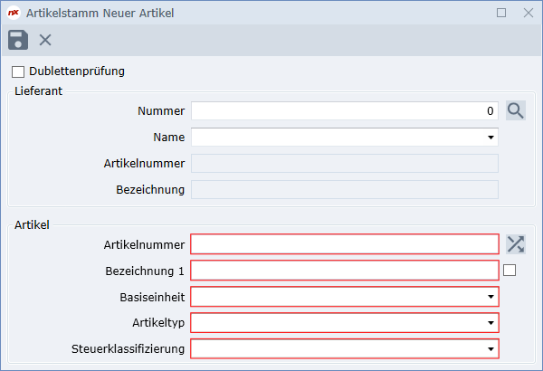 Bei ähnlichen Artikeln lohnt sich für eine NEU-Anlage die Duplizier-/Kopierfunktion, ein bestehender Artikel kann so als Vorlage dienen.