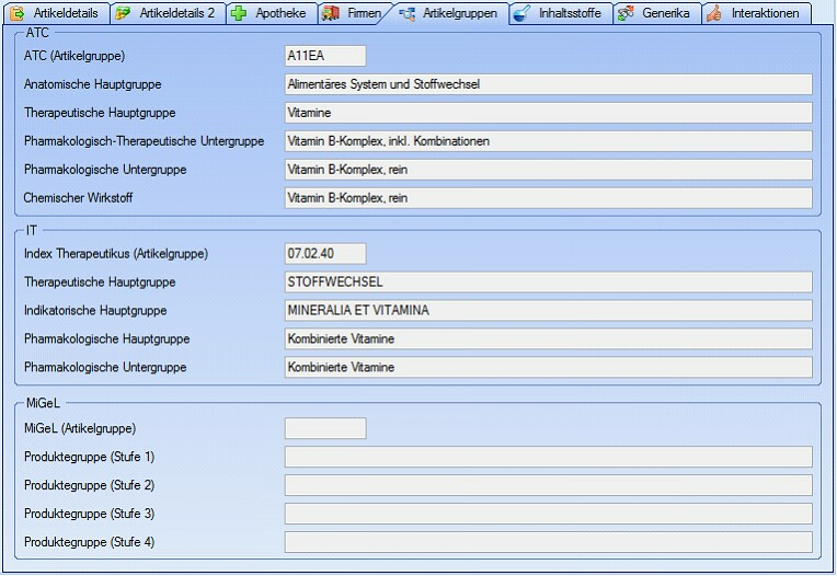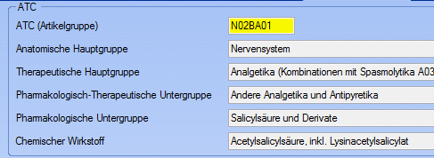 ATC-Artikelgruppe | Anzeige der ATC-Artikelgruppe mit den jeweiligen Unterstufen und den dazugehörigen Gruppenbezeichnungen. à max. 5-Stufen |