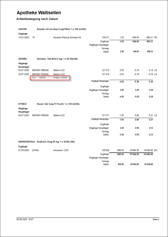 Bei folgenden Auswertungen wird bzw. kann wahlweise die Fallnummer mit ausgegeben werden. Aktivieren Sie dazu das Häkchen für