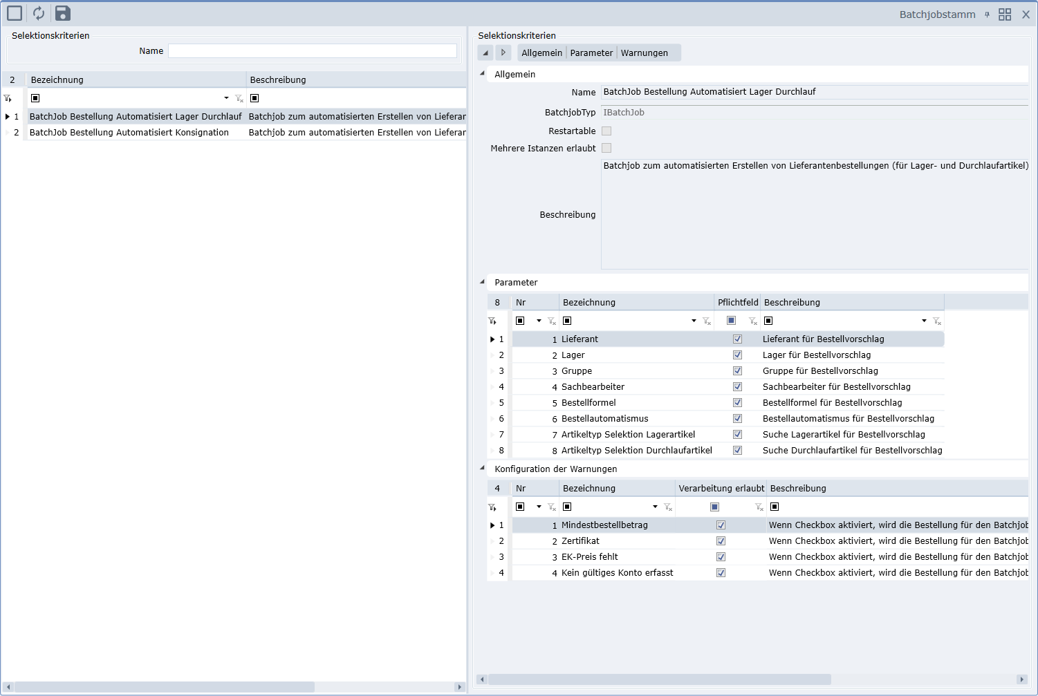 Mehrere Instanzen erlaubt | Ja/Nein – Gibt an, ob mehrere Batchjobs einer Batchjob-Voreinstellung gespeichert werden dürfen |