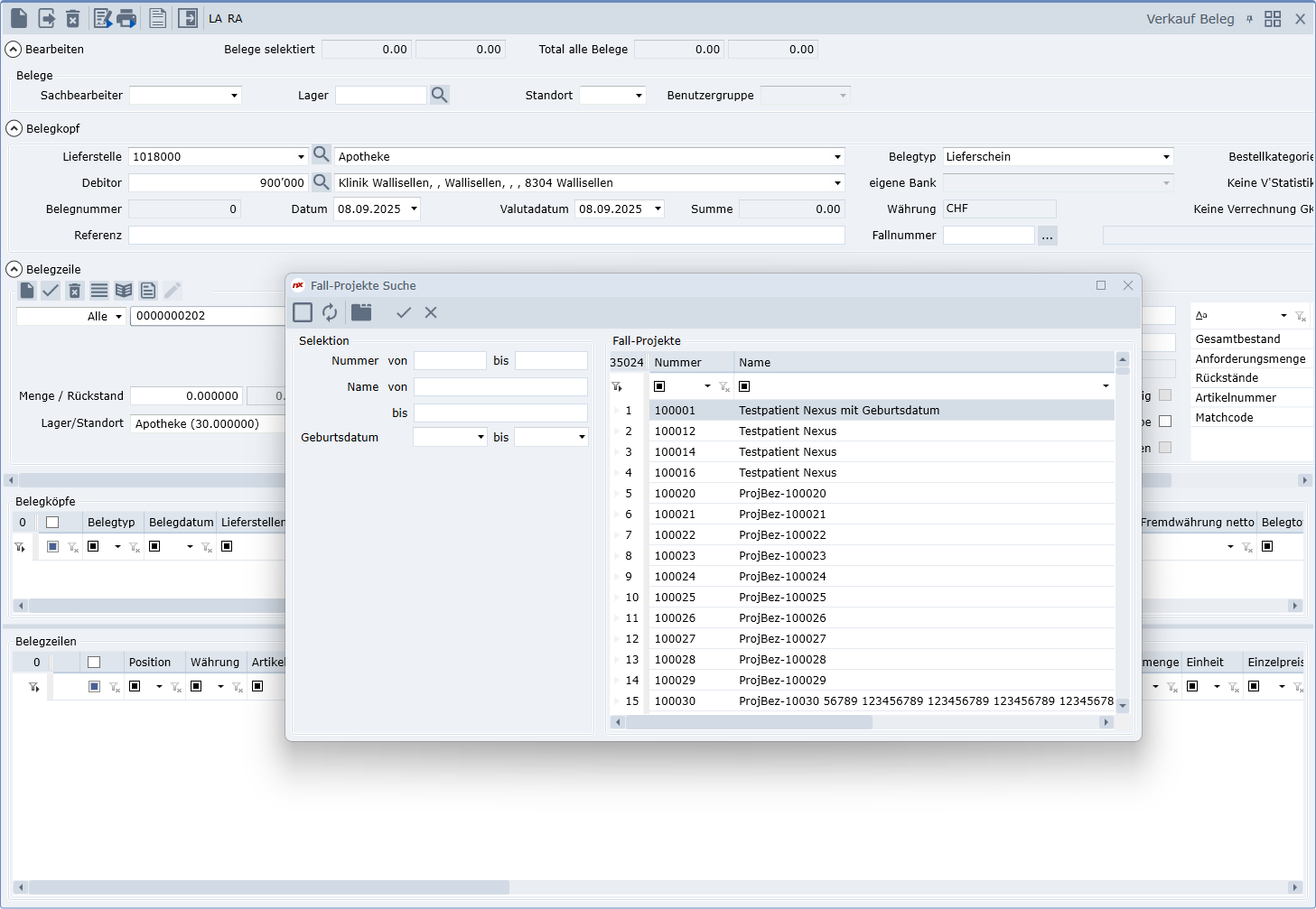 Bei der Erfassung eines Warenabgangs kann eine Fall-Nummer einer einzelnen Belegzeile oder dem Belegkopf (gilt dann für alle Belegzeilen) zugeordnet werden.