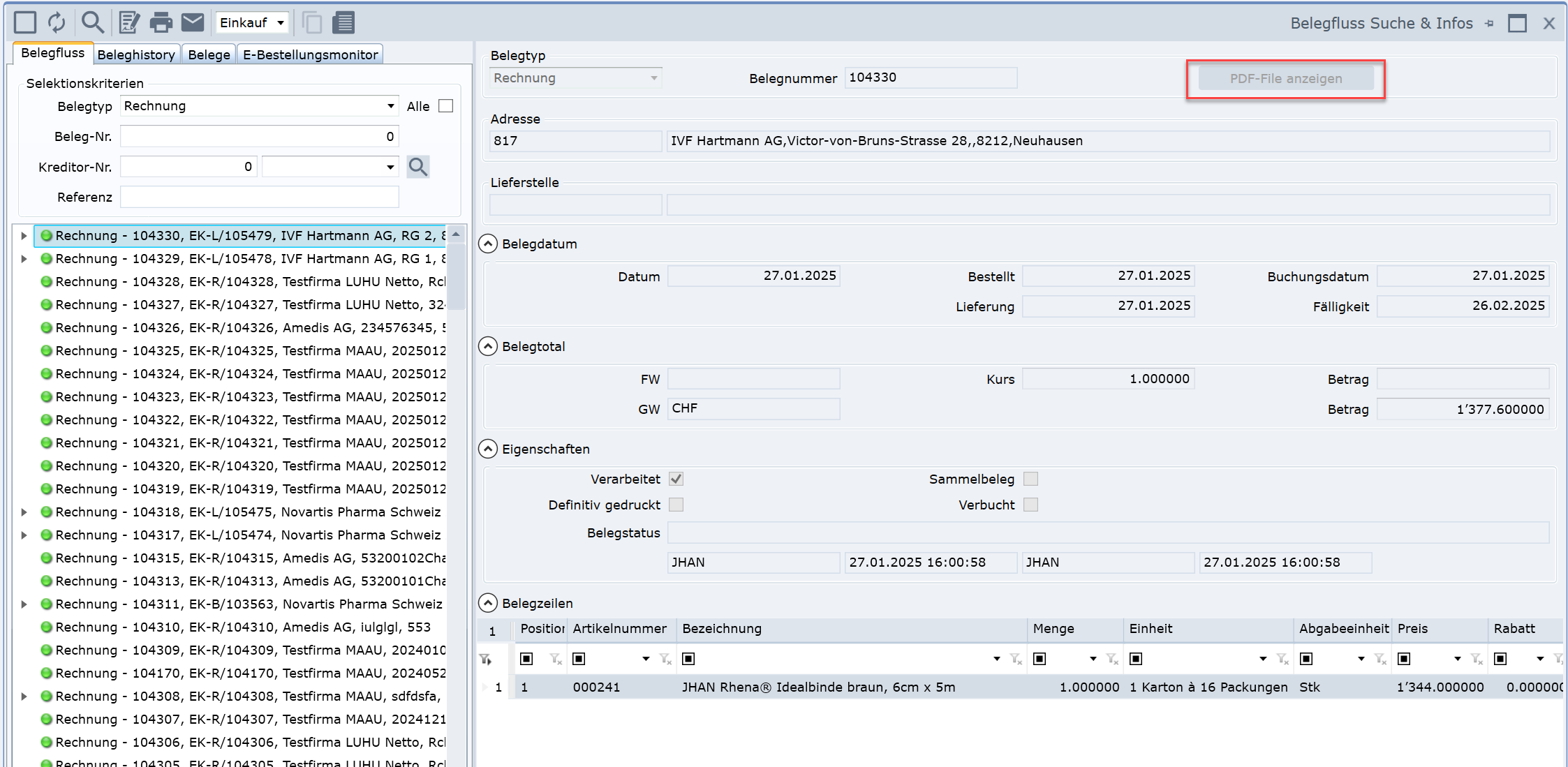 NEXUS / MATERIAL NEXUS / MATERIAL - Handbücher Handbuch Material NX Zusatzmodule Zusatzmodul E-Rechnung eRechnung Current: Belegfluss Belegfluss Im Belegfluss kann der Anwender die .pdf. Rechnung jederzeit wieder über den Button 'PDF-File anzeigen' aufgerufen werden.Die Installation der PDF-Funktion wird beim Kunden vorausgesetzt. ×