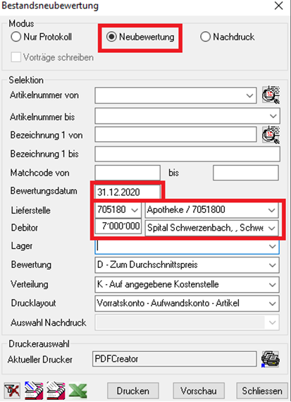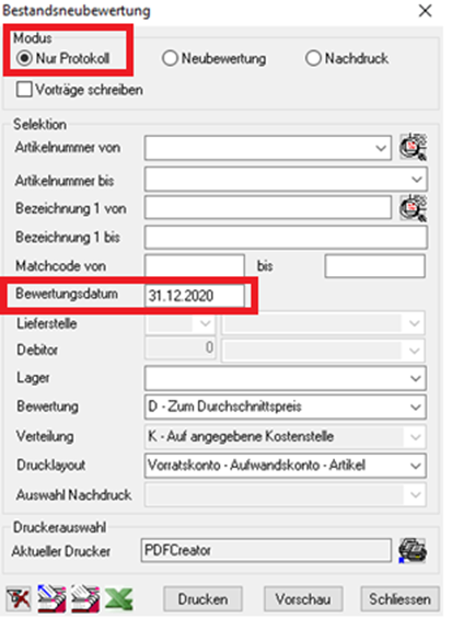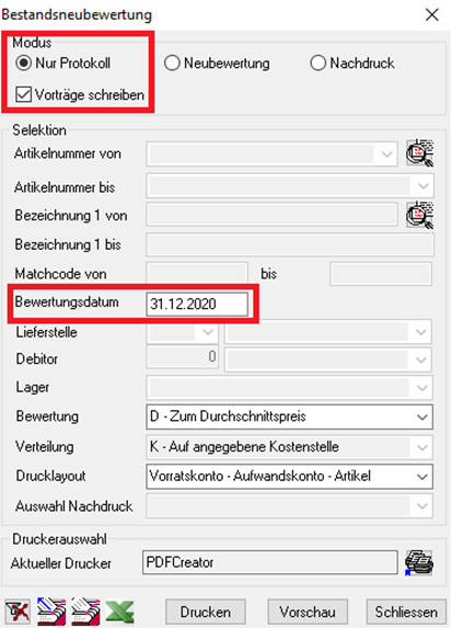Bewertungspreis | Laut Auswahlkriterien Zum Durchschnittspreis Zum Einkaufspreisprinzip (nur Deutschland) Zum Niederstpreisprinzip (nur Deutschland) In der Regel der berechnete Durchschnittspreis. |