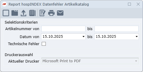 | Artikelnummer von/bis | Eine Eingabe schränkt die Liste auf die gewählten Artikel ein. |