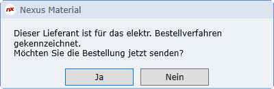 Beim "Verarbeiten" einer Bestellung wird geprüft, ob der Lieferant am elektronischen Bestellverfahren teilnimmt. Wenn JA, dann erfolgt die Zusatzabfrage: