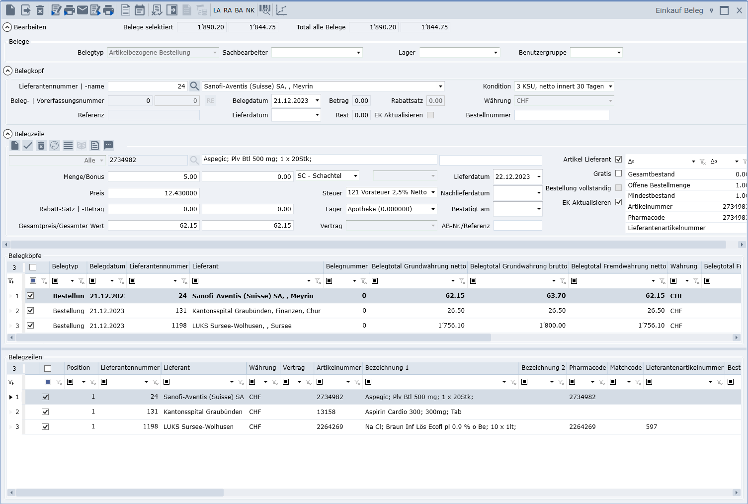Gleicher Ablauf wie unter "Lieferantenbezogene Bestellung" beschrieben. Unterschied - hier können mehrere Lieferanten enthalten sein, deswegen erfolgt die Zwischenabfrage pro Lieferant: