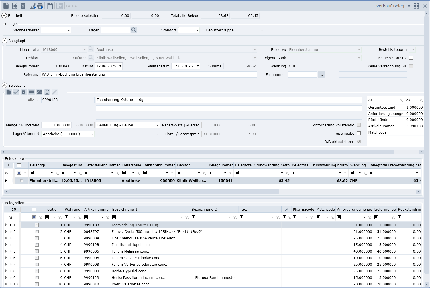 Belegnummer | Interne fortlaufende Belegnummer (Nummernkreis ist in den 'Einstellung Belegnummerierung MATERIAL' definiert). |