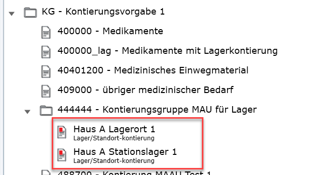 Zwischenkonto Umbuchungen | Eine Hinterlegung ist nur zwingend erforderlich, wenn mit Lagerkontierungen unter 'Stammdaten Gruppen > Kontierungsvorgabe1 gearbeitet wird. Also wenn pro Klinik-Standort unterschiedliche Warenvorratskonten zum Einsatz kommen. | ||||||||||||||||||||||