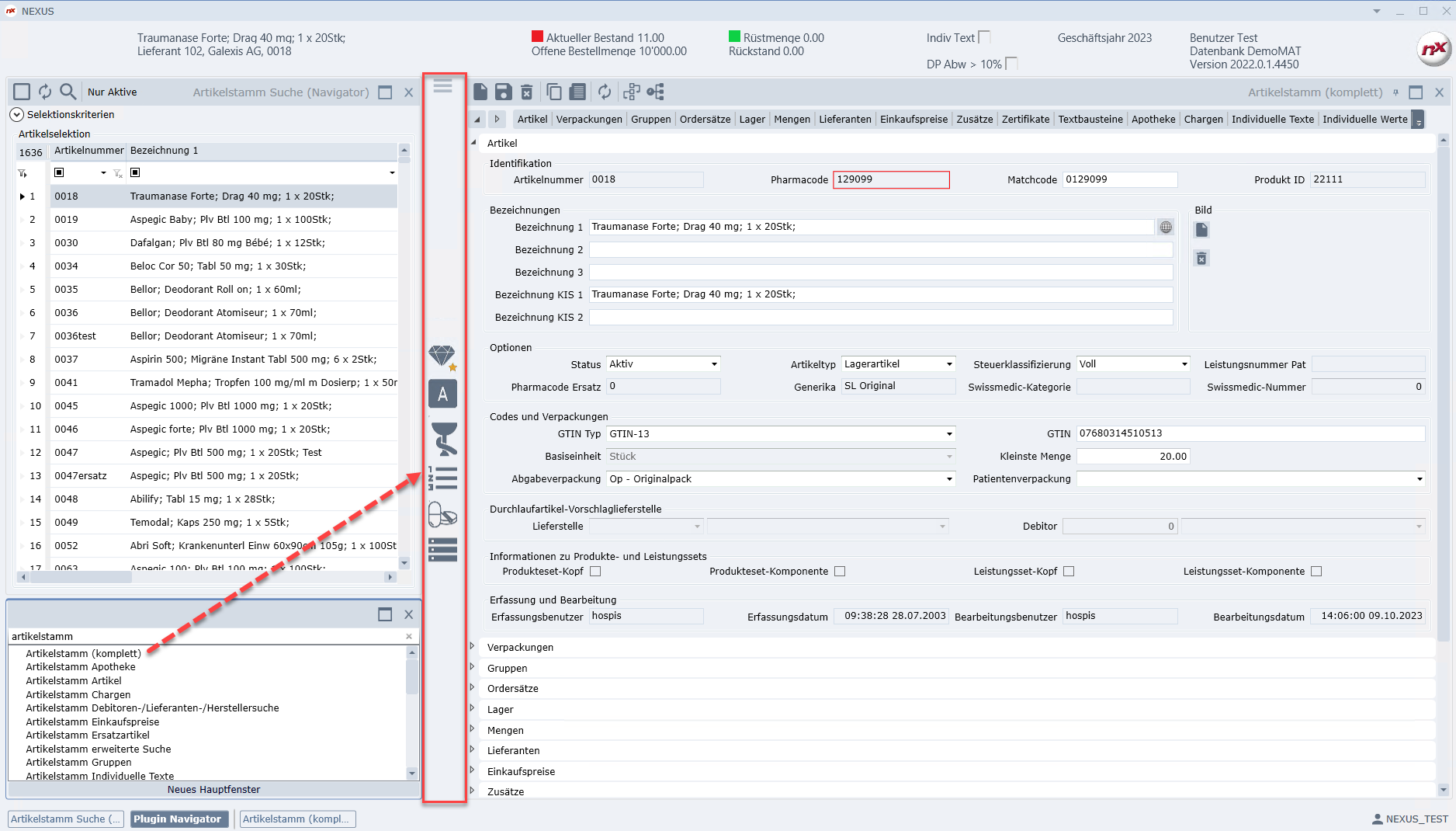 Jeder Benutzer kann für einen schnellen Zugriff, seine häufig benutzten Plugins und Workspaces in die Favoritenleiste anheften. Dabei wird das Plugin oder der Workspace im Plugin Navigator ausgewählt und per Drag & Drop in diesen Bereich gezogen. Ein Favorit kann ein Icon zur Identifikation erhalten. Durch Klick auf eines dieser Symbole, wird das entsprechende Module, Reports oder Workspace geöffnet.