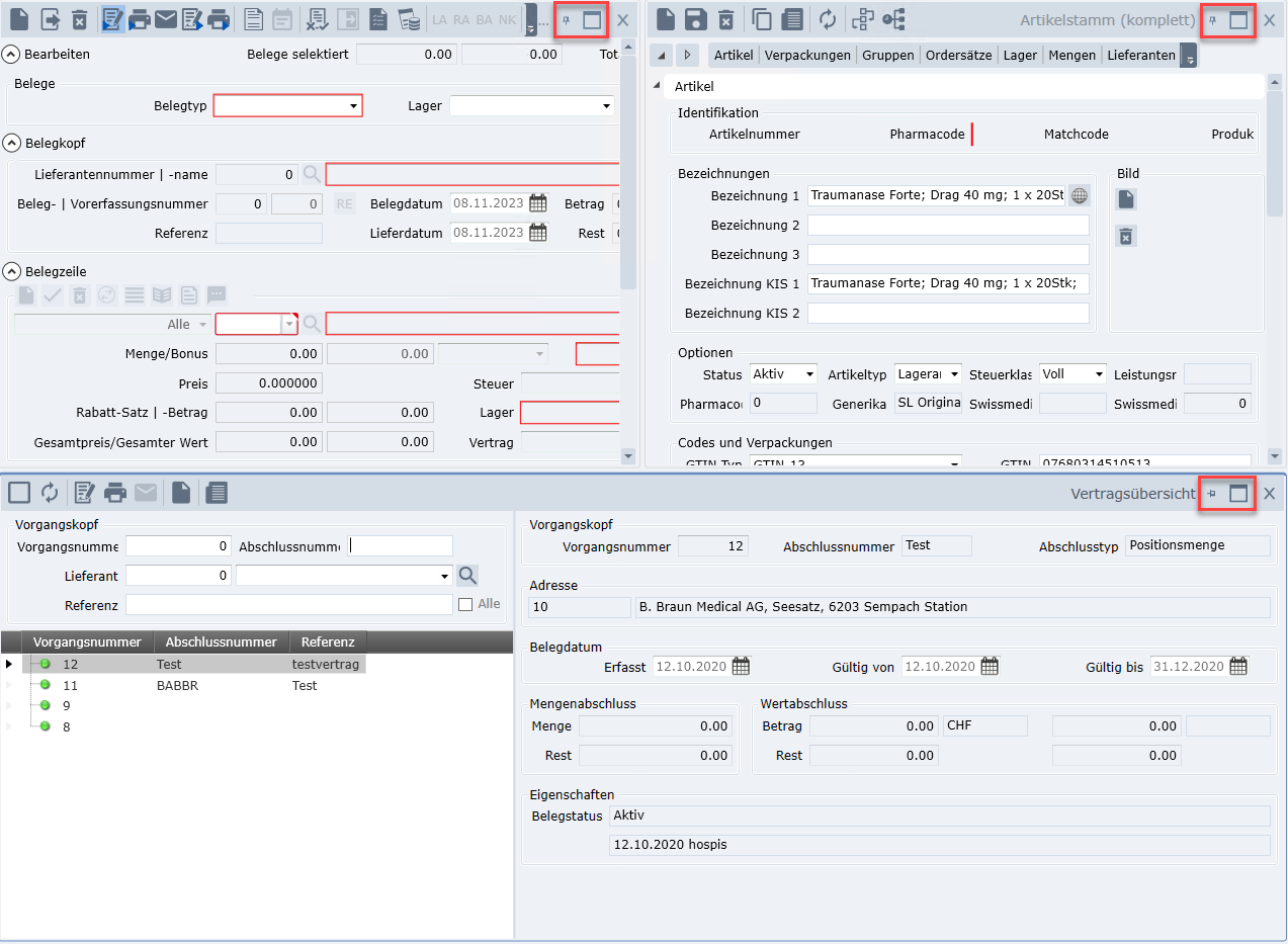 Sind mehrere Fenster im Arbeitsbereich geöffnet, so wird beim Klick auf ein Modul im Plugin Navigator das aktive Modul ersetzt, es sei denn dieses ist gepinnt, dann wird das ausgewählte Modul zusätzlich angezeigt. Durch den Button mit der Pinn-Nadel