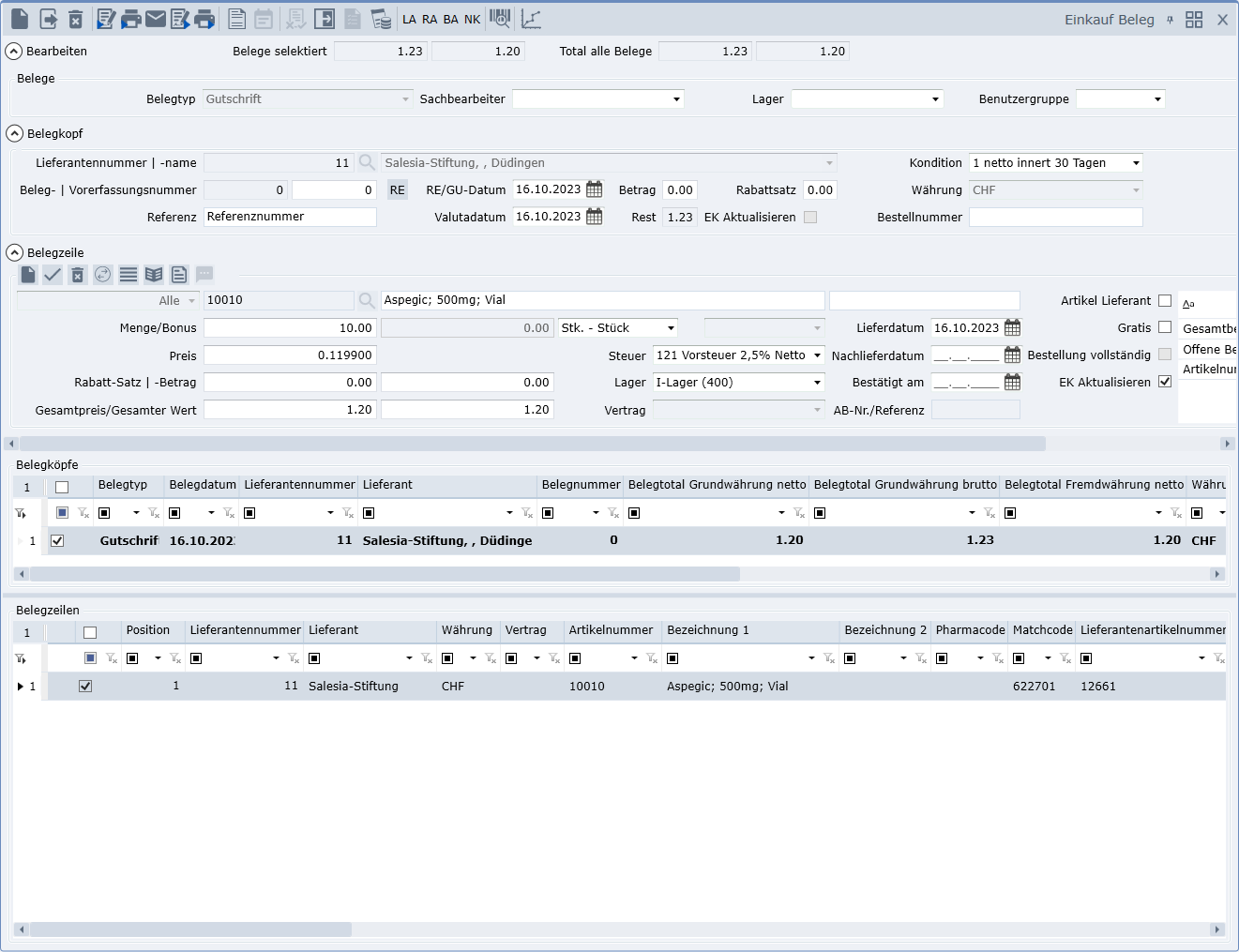 Referenznummer | Pflichtfeld: Entspricht der Gutschriftsnummer des Lieferanten. |