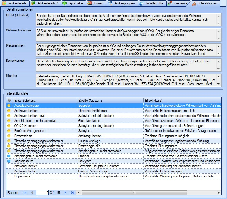 Auf dieser Maske erhalten Sie Informationen zu Interaktionen.
