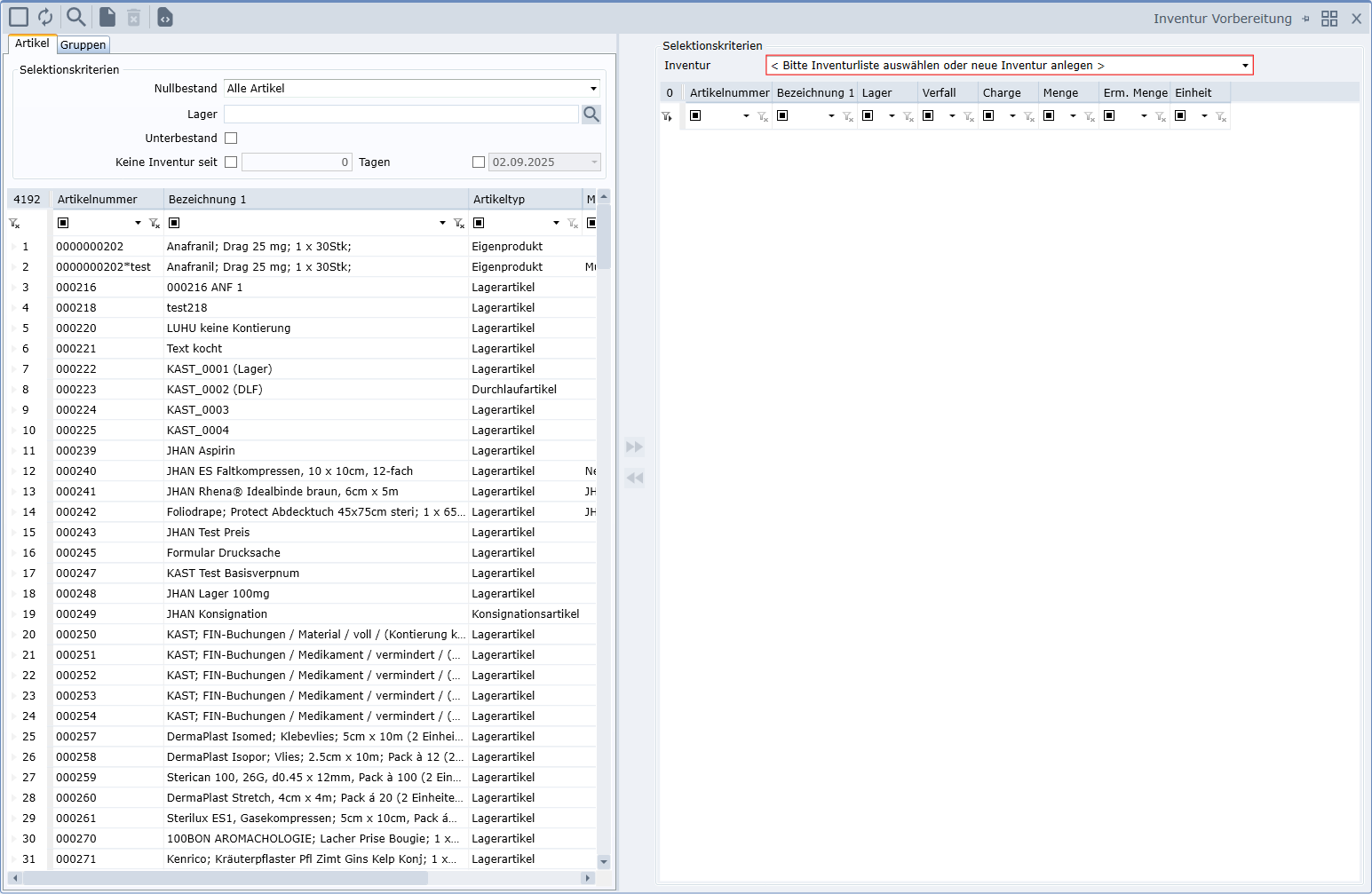 Damit die Zuordnung vereinfacht wird, ist im Grid in der Inventur der Artikeltyp neu aufgeführt. Im Grid kann nach Artikeltyp sortiert werden.