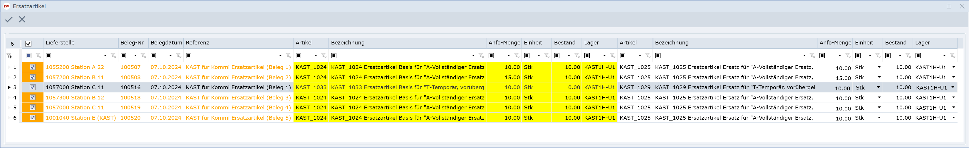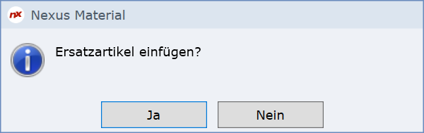 Evtl. erscheint während der Mengenprüfung die folgende Abfrage zum Ersatzartikel.